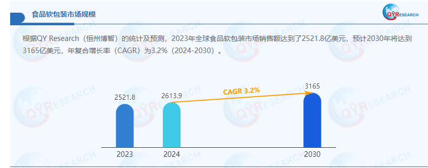 食品軟包裝全國(guó)份額占比:年復(fù)合增長(zhǎng)率(CAGR)為3.2%