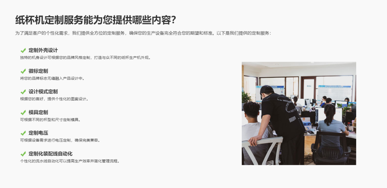 明源機(jī)械擁有14年紙杯成型設(shè)備制造經(jīng)驗(yàn),引領(lǐng)行業(yè)品質(zhì)標(biāo)準(zhǔn)致力于為客戶提供專業(yè)品質(zhì)的紙杯機(jī)械產(chǎn)品。我們對行業(yè)有著深刻的理解,不斷追求技術(shù)創(chuàng)新,為客戶提供高效可靠的紙杯成型解決方案。選擇明源機(jī)械,就意味著選擇紙杯成型領(lǐng)域的領(lǐng)先技術(shù)。