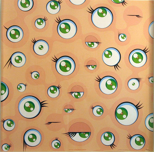 村上隆的代表主題“Jellyfish Eyes”。 該組作品為日本村上隆工作室授權限量版畫,且均為村上隆親筆簽名,限量300版。《眼睛系列》再度強調了缺乏深度、趣味媚俗的大眾群體-“御宅族”這一流行取向和審美偏好的另一創(chuàng)作。