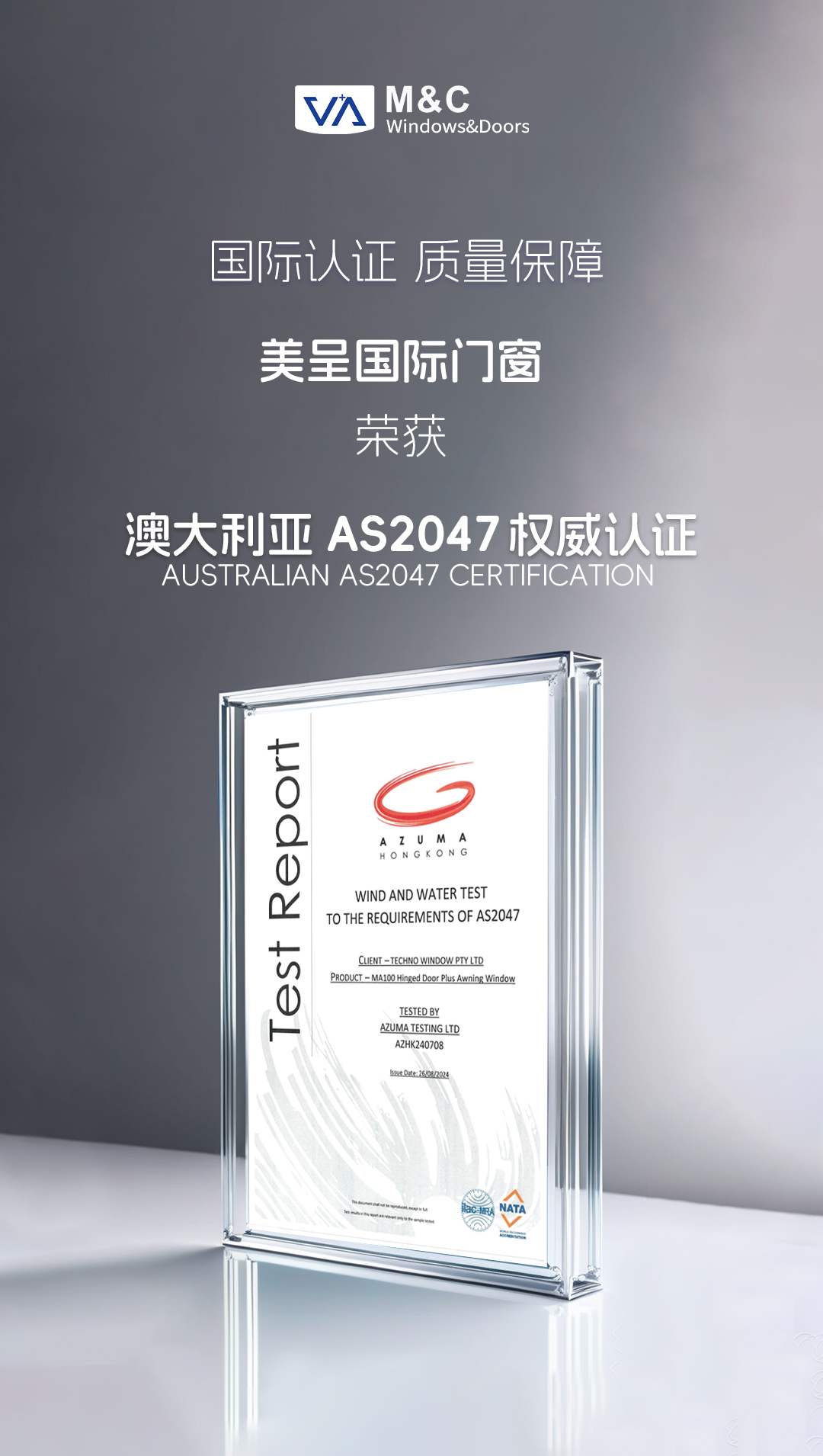 美呈國(guó)際門窗數(shù)十款產(chǎn)品獲澳大利亞AS2047認(rèn)證,贏得澳洲市場(chǎng)認(rèn)可