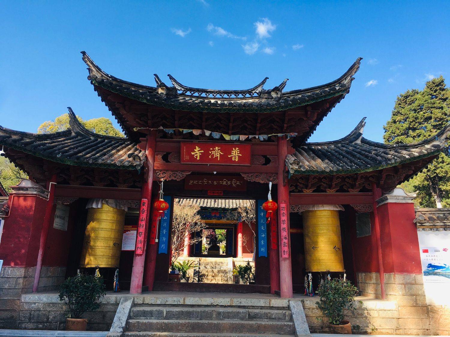普濟寺是麗江五大寺之一,原有大殿、僧院等12個院落,現(xiàn)存3院,由山門、護法堂、大殿、南北廂房等組成。在教儀上有融漢、藏宗教為一爐的特點。大殿重檐歇山頂建筑,以頂覆銅瓦故又名銅瓦殿。面闊5間22.85米,進深5間20.3米,呈長方形,屋頂銅瓦覆蓋面積為46.4平方米,是云南唯一幸存的銅瓦建筑。(麗江五大寺是指,玉峰寺、福國寺、普濟寺、指云寺、文峰寺。這五個寺院有個共同的特點,都是喇嘛寺(白教),其中,福國寺現(xiàn)在僅存大殿,即玉泉公園的“五鳳樓”)