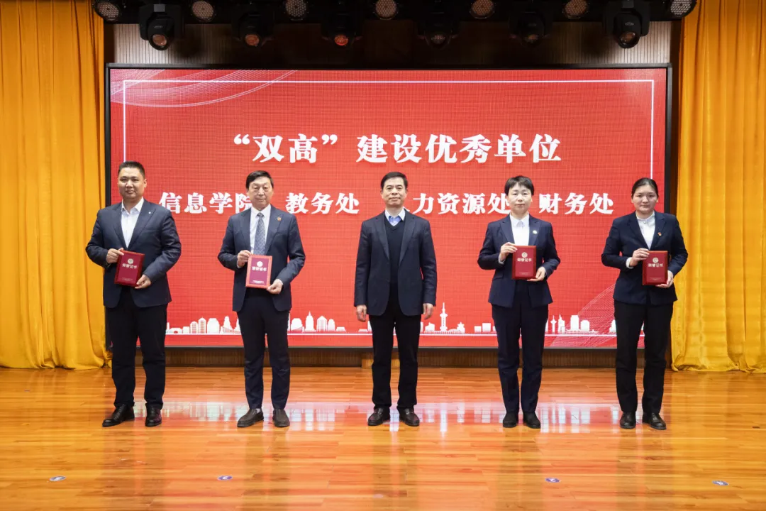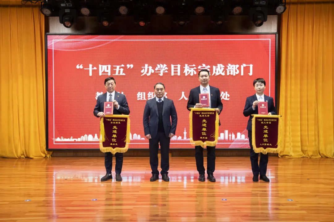 此后,黨委書記郭中平、常務(wù)副校長(zhǎng)陳貞忠、黨委副書記符水龍等校領(lǐng)導(dǎo),分別為榮膺“雙高”工作先進(jìn)集體與個(gè)人、2024-2025學(xué)年優(yōu)秀干部以及“十四五”期間完成辦學(xué)目標(biāo)的單位代表頒發(fā)了榮譽(yù)證書與獎(jiǎng)旗。這些意義重大的榮譽(yù),是對(duì)奮斗者辛勤付出的崇高嘉獎(jiǎng),亦激勵(lì)著全體鄭信人以賢能為榜樣、奮發(fā)進(jìn)取、努力爭(zhēng)先。