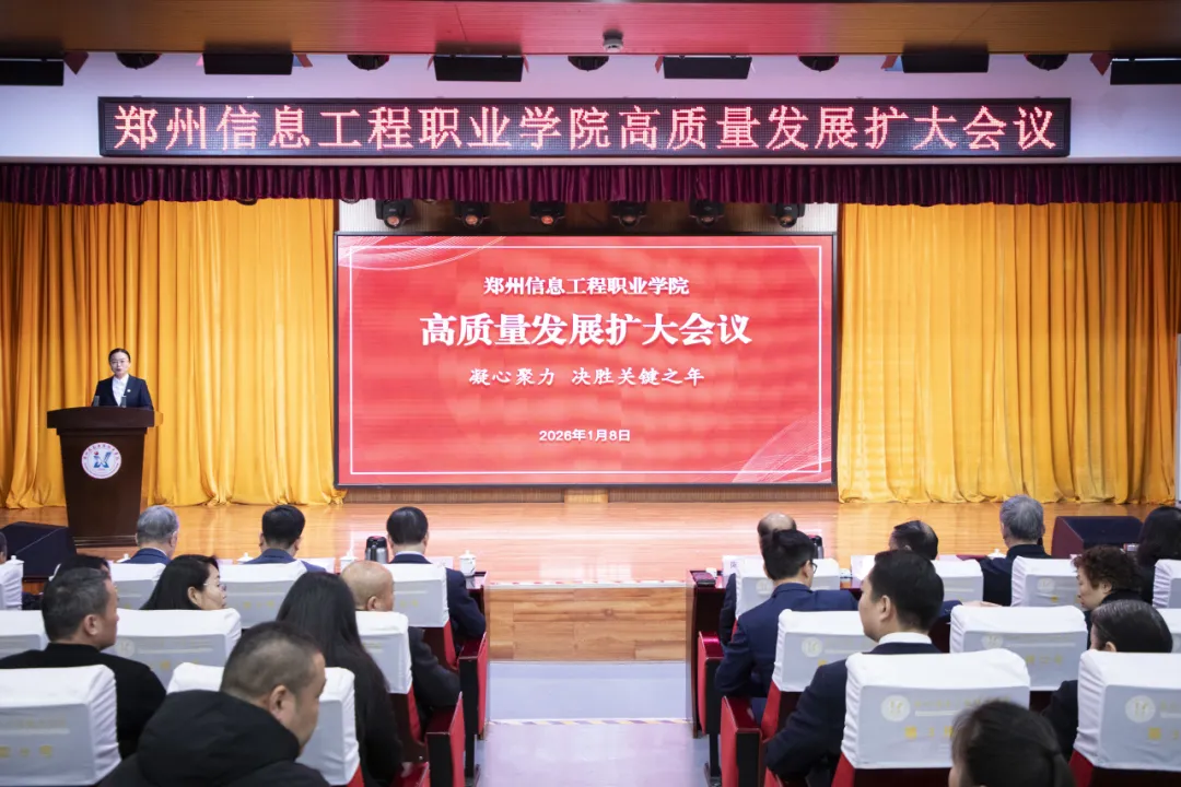 2026年1月8日下午,鄭州信息工程職業(yè)學(xué)院于南校區(qū)報(bào)告廳隆重召開高質(zhì)量發(fā)展擴(kuò)大會(huì)議。此次會(huì)議系“雙高”建設(shè)提質(zhì)與升本攻堅(jiān)工作的階段性總結(jié)會(huì),標(biāo)志著學(xué)校發(fā)展步入關(guān)鍵階段。學(xué)校全體校級(jí)領(lǐng)導(dǎo)出席了該會(huì)議,全校行政人員及部分教師代表參會(huì)。會(huì)議由執(zhí)行校長(zhǎng)陶鎣潔主持。