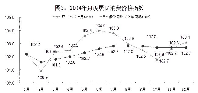 | 表1:2014年居民消費價格比上年漲跌幅度 | |