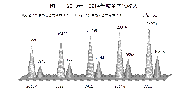 ⒀按照國家統(tǒng)計局城鄉(xiāng)一體化住戶調(diào)查改革方案,從2014年起,城鎮(zhèn)居民人均可支配收入和農(nóng)民人均純收入指標(biāo)修改為城鎮(zhèn)(農(nóng)村)常住居民人均可支配收入,統(tǒng)計口徑發(fā)生變化,絕對值與2013年不可比,增速為可比口徑計算。