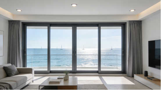 美呈國(guó)際的門窗系統(tǒng)基于 AS2047 標(biāo)準(zhǔn)進(jìn)行整體設(shè)計(jì),通過(guò)高強(qiáng)度斷橋鋁型材、多腔體結(jié)構(gòu)與高精度加工工藝,確保窗框在高層風(fēng)壓環(huán)境下依然保持良好的氣密性能。在此基礎(chǔ)上,M&C 可根據(jù)項(xiàng)目位置與噪音類型,配置雙層或夾膠 Low-E 玻璃,有效削弱交通噪音與低頻風(fēng)噪。