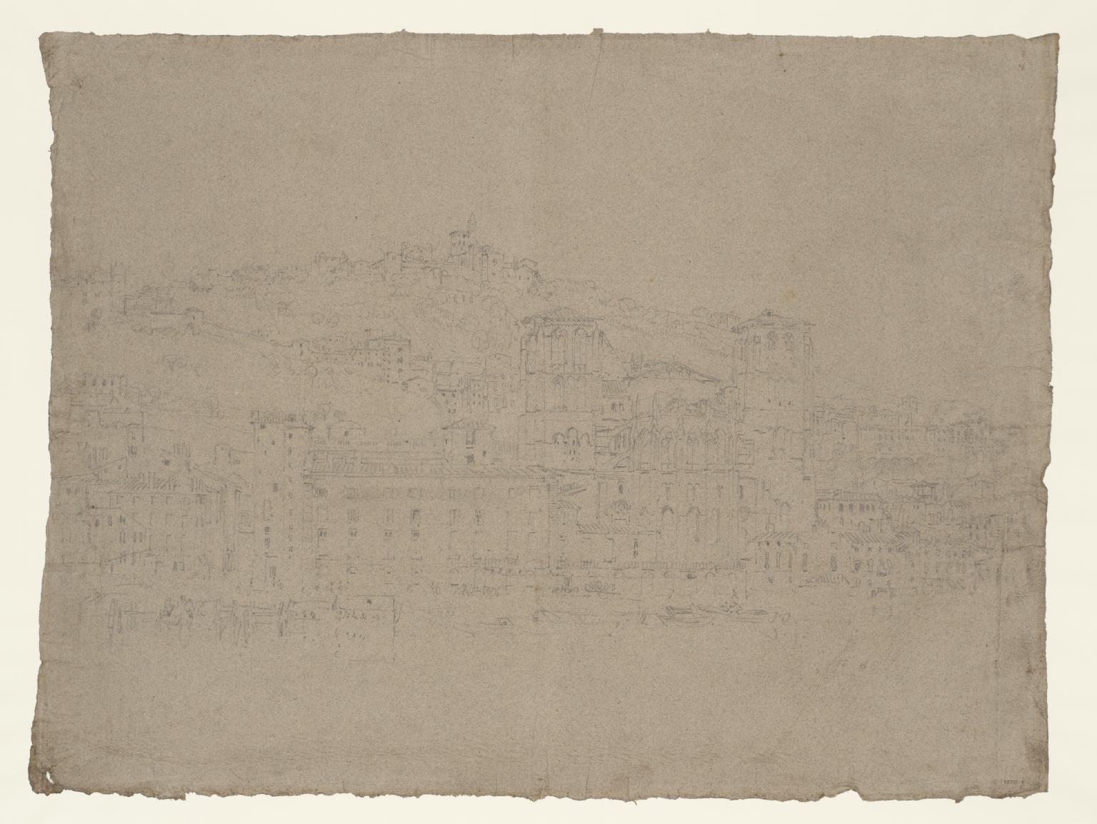 This large and detailed study was drawn during the three days Turner spent in Lyon, in July 1802, in the course of his first visit to France and Switzerland. On his return he said that 'the buildings of Lyon are better than those of Edinburgh, but there is nothing so good as Edinburgh Castle'. The view is taken from the eastern bank of the River Sa?ne, looking towards the twelfth century Cathedral of St. Jean and the Fourvière Hill, the site of the original Roman settlement.