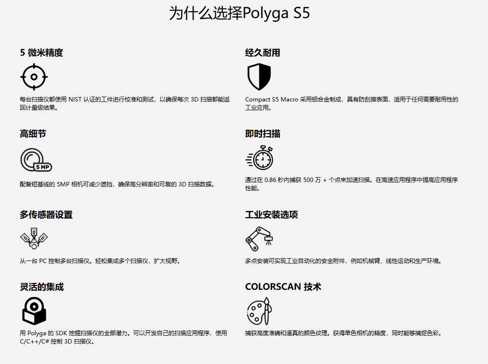 3d掃描儀是一款工業(yè)級(jí) 微距3D 掃描儀,能夠以 5 微米的精度對(duì) 1 至 5 厘米尺寸的部件進(jìn)行數(shù)字化處理。它在一秒鐘內(nèi)生成高分辨率的 3D 掃描,并采用堅(jiān)固的外殼。通過(guò)軟件 SDK (SBSDK) 訪問(wèn)強(qiáng)大的功能,從而可以輕松地將掃描儀集成到工業(yè)自動(dòng)化或機(jī)器人系統(tǒng)中。