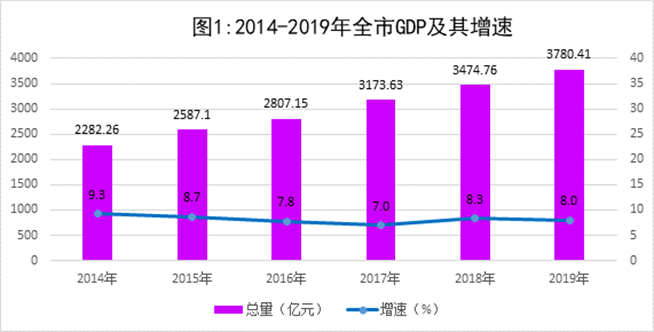 經(jīng)濟(jì)總量穩(wěn)步增長(zhǎng)。初步核算,全年地區(qū)生產(chǎn)總值3780.41億元,總量居全省第二,比上年增長(zhǎng)8.0%,比全國(guó)和全省平均水平分別高1.9和0.4個(gè)百分點(diǎn)。其中:第一產(chǎn)業(yè)增加值380.62億元,增長(zhǎng)3.1%;第二產(chǎn)業(yè)增加值1525.83億元,增長(zhǎng)7.9%;第三產(chǎn)業(yè)增加值1873.96億元,增長(zhǎng)8.9%,三次產(chǎn)業(yè)結(jié)構(gòu)為10.0:40.4:49.6,第三產(chǎn)業(yè)較上年提高了0.7個(gè)百分點(diǎn)。人均GDP為65357元,比上年增長(zhǎng)7.7%。