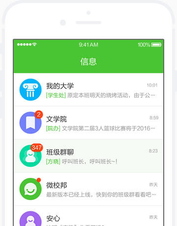 針對北京信息科技大學(xué)打造師生移動互動平臺,實(shí)現(xiàn)院校消息通知的上傳下達(dá),微校邦為教師和學(xué)生打造了校園通知消息全網(wǎng)通功能,支持了移動聯(lián)通電信運(yùn)營商的短消息發(fā)送,同時(shí)還推出了APP圖文信息的收發(fā)功能,做到了院校官方消息通知第一時(shí)間覆蓋所有在校師生。另外北京信息科技大學(xué)的廣大師生通過微校邦APP的班級群聊和部門群聊統(tǒng)一實(shí)名的方式進(jìn)行溝通交流。大大提高了校園師生互動,方便了師生及時(shí)了解今天及近期在學(xué)校的相關(guān)學(xué)校、工作事物。