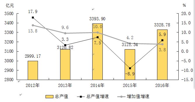 初步核算,全年生產(chǎn)總值2773.05億元,比上年增長(zhǎng)6.5%。其中,第一產(chǎn)業(yè)增加值162.44億元,增長(zhǎng)4.8%;第二產(chǎn)業(yè)增加值1680.70億元,增長(zhǎng)4.1%;第三產(chǎn)業(yè)增加值929.91億元,增長(zhǎng)11.1%。一、二、三產(chǎn)業(yè)增加值占生產(chǎn)總值的比重分別為5.9%、60.6%和33.5%。按常住人口計(jì)算,人均生產(chǎn)總值81764元,約合11787美元。