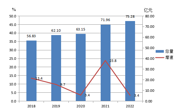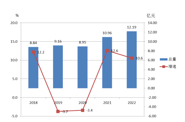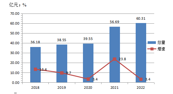 圖1 2018-2022年全部工業(yè)增加值及其增長速度