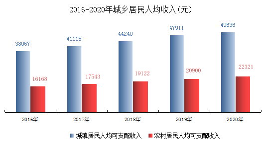 城鄉(xiāng)住戶抽樣調(diào)查資料顯示,城鎮(zhèn)居民人均可支配收入達(dá)到49636元,比上年增收1725元,高出廊坊平均水平3924元,比上年增長(zhǎng)3.6%。農(nóng)村居民人均可支配收入達(dá)到22321元,比上年增收1421元,高于廊坊平均水平2598元,增長(zhǎng)6.8%,增速高于城鎮(zhèn)居民收入3.2個(gè)百分點(diǎn)。城鄉(xiāng)收入比由上年的2.29縮小為2.22。
