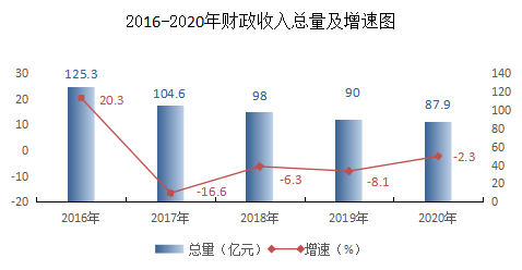 全年財(cái)政收入完成87.9億元,下降2.3%,降幅比上年收窄5.8個(gè)百分點(diǎn)。其中,一般公共預(yù)算收入完成58.2億元,下降5%。全年一般公共預(yù)算支出完成98.2億元,增長(zhǎng)1%,增速比上年回落4.4個(gè)百分點(diǎn)。
