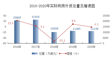 全年實(shí)際利用外資11159萬(wàn)美元,比上年下降1.1%。
