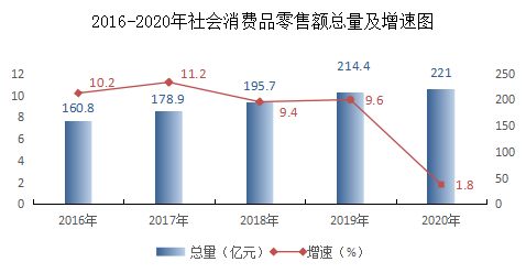 全年社會(huì)消費(fèi)品零售額完成221億元,增長(zhǎng)1.8%,高于廊坊1.6個(gè)百分點(diǎn)。總量居廊坊第二位,增速居第三位。分銷售地區(qū)看,城鎮(zhèn)市場(chǎng)完成185.9億元,增長(zhǎng)1.9%,其中城區(qū)零售額為121.4億元,增長(zhǎng)2.3%;鄉(xiāng)村市場(chǎng)完成35.1億元,增長(zhǎng)1.3%。限上消費(fèi)品零售額完成32.1億元,比上年下降9.7%,比一季度的-18.8%收窄9.1個(gè)百分點(diǎn)。限上零售額中,通過互聯(lián)網(wǎng)實(shí)現(xiàn)的銷售額1.1億元,增長(zhǎng)17.5%。生活必需品、藥品消費(fèi)類增幅較大,拉動(dòng)作用明顯。糧油食品類和中西藥品類,分別實(shí)現(xiàn)銷售額8.7和4億元,分別增長(zhǎng)24.4%和19.4%,拉動(dòng)限上銷售額增長(zhǎng)4.4和1.7個(gè)百分點(diǎn)。
