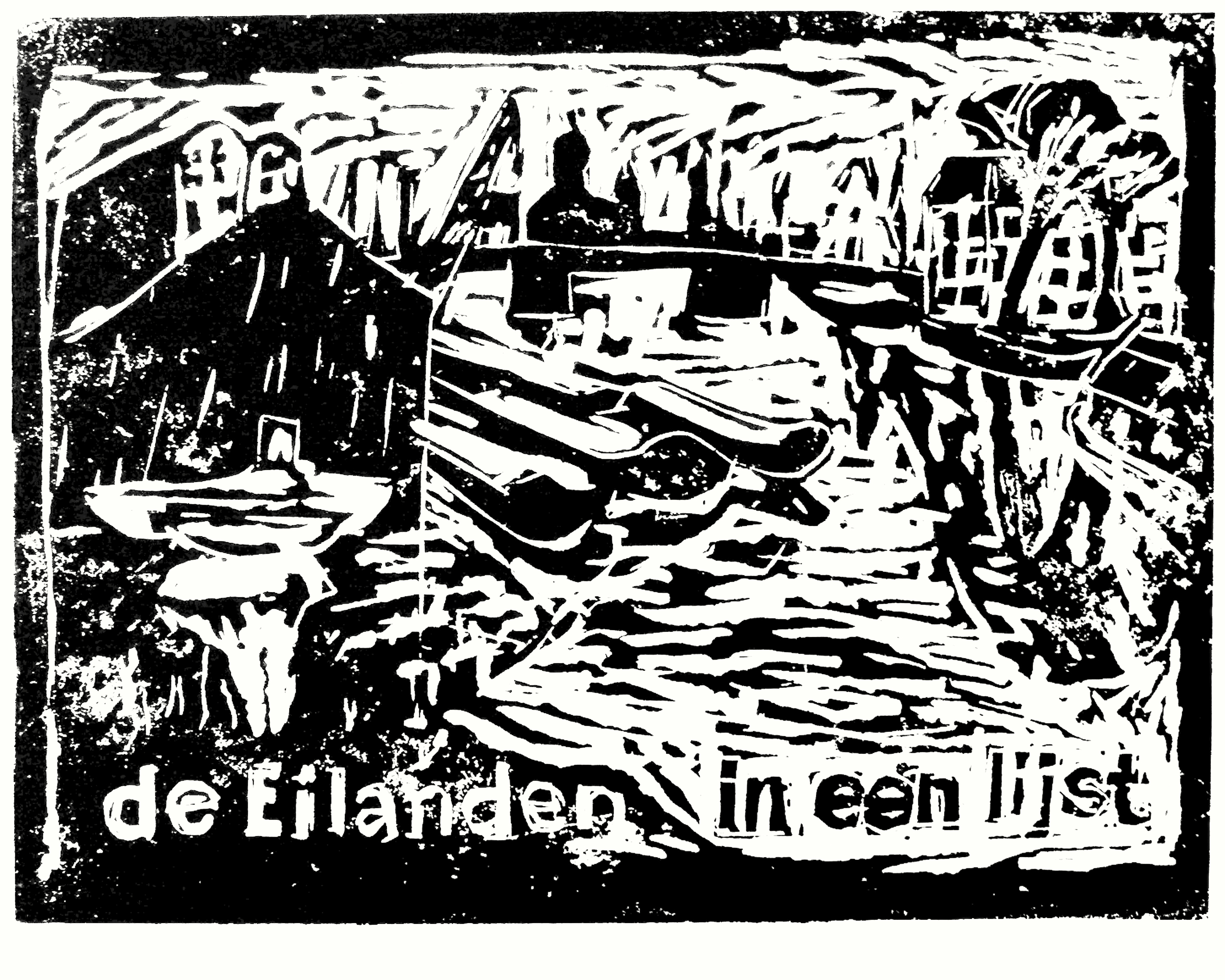 Paul Werner made this wood-cut as poster and invitation-design for an exposition of paintings drawing and graphic art of the district Eastern Islands in Amsterdam, Oosterkerk, 1991.The wood-cut presents a view on the old harbour area Oosterdok and the wide canal in front: Nieuwe Vaart. The image is seen in the city center of Amsterdam, seen in the direction of Central Station. At the right the building of the contemporary Maritime Museum.